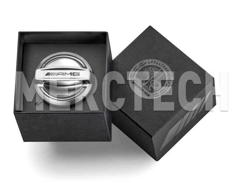 Genuine Mercedes-AMG fuel filler cap in attractive presentation packaging.